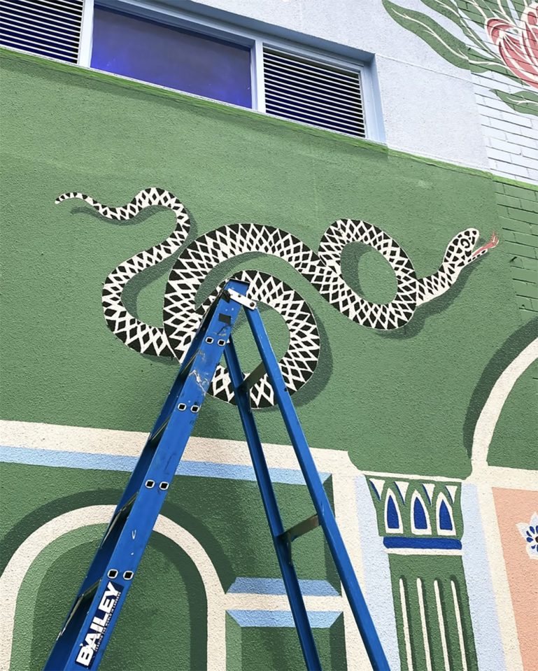 A nature temple on a suburban street, Victoria Garcia’s new mural transforms a once-grey building into a celebration of pattern, folklore and the natural world