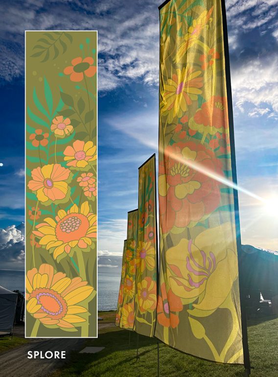 Self-taught and deeply connected to her coastal roots, Kell Sunshine is a muralist, lettering artist and illustrator whose bold curvaceous forms and retro-fresh colour palettes bring her ecological storytelling to life.