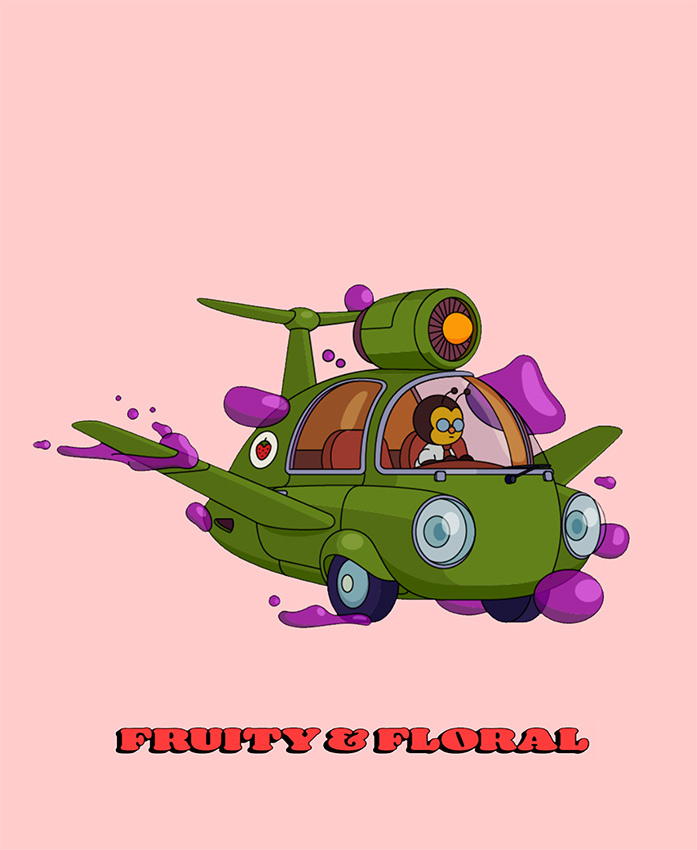 Emile Holmewood’s latest work for Airship Coffee gives each flavour a mascot – and its own flying machine