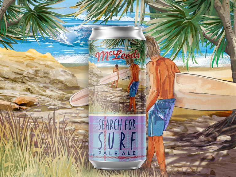 Search For Surf, another great Pale Ale by McLeods Brewery with artwork by Sarah Larnach